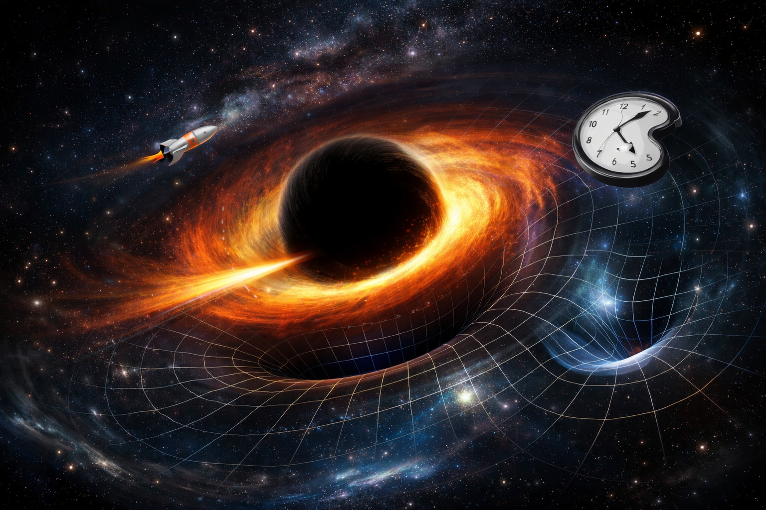 블랙홀 주변에서는 공간뿐 아니라 시간의 흐름도 느려집니다. 사건의 지평선에 가까워질수록 외부 관측자 기준에서 시간은 점점 느려지고, 이론적으로는 지평선에서 멈춘 것처럼 보입니다. 이런 이유로 블랙홀은 중력뿐 아니라 시간과 공간의 성질을 동시에 변화시키는 천체로 이해됩니다.